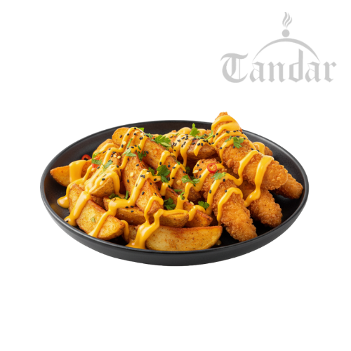 بطاطس – بوتيتوز  – استريبس  – جبنة شيدر  او موتزاريلا  او رومي -بهارات